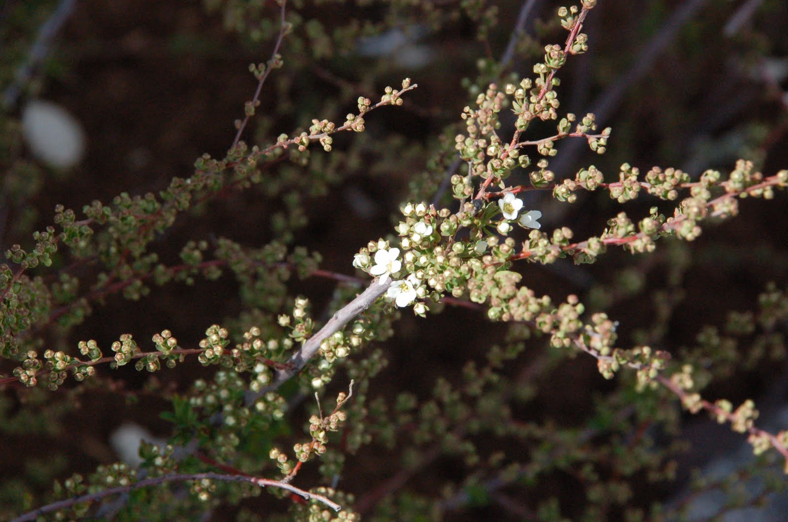 雪柳が新芽を膨らまし小さな白い可憐な花を咲かせ始めた